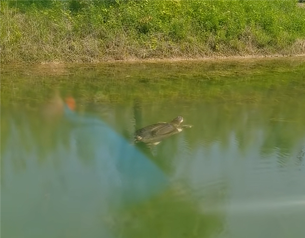 资料显示,斑鳖是世界最大的淡水鳖,其背甲长椭圆形,躯体扁平,背面平滑光泽,暗橄榄绿(或黑绿)色,缀有许多黄色斑点,其中以头部花纹最为鲜艳夺目。