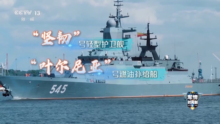 俄罗斯海军参演舰艇为20380型“守护级”轻型护卫舰“坚韧”号和“叶尔尼亚”号燃油补给船。“坚韧”号专注反潜作战和水面监视,搭载卡-27反潜直升机,拥有精准探测水下目标的能力。