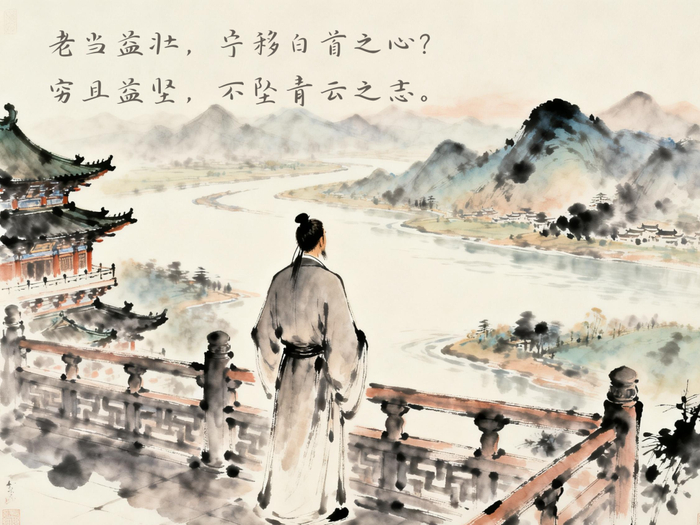 王勃没有在失意中沉沦,他写道:“君子见机,达人知命。”“老当益壮,宁移白首之心?穷且益坚,不坠青云之志。”