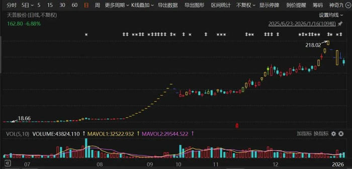 近期,天普股份股价出现剧烈波动。1月16日,天普股份盘中一度跌停,尾盘拉升,最终收盘跌幅为6.88%。