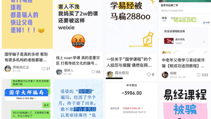 社交媒体上,不少网友分享自己父母被“国学大师”骗钱的经历。(截图来源:小红书)