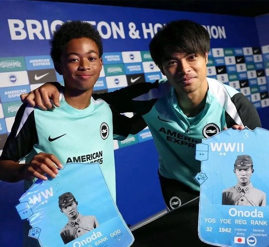 近日,英超布莱顿俱乐部就一张引发争议的图片道歉。图中,日本国脚三笘薰与一名小球员各自手持一张印有二战时日本军官小野田宽郎头像的卡片。