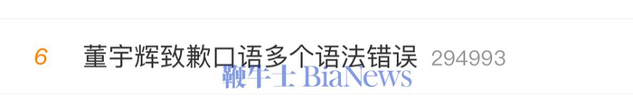 11月14日,“董宇辉致歉口语多个语法错误”登上微博热搜,引起众多网友热议。