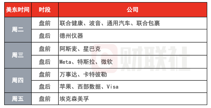 本周,标普500指数成分股中将有超过90家公司发布季度财报,其中微软、Meta、特斯拉将在周三美股收盘后公布业绩,苹果则定于周四盘后发布。
