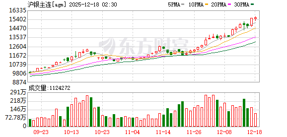 12月17日,沪银主力合约收于15512元/千克,单日涨幅达5.05%,再次刷新历史纪录;外盘方面,伦敦现货白银价格一度最高触及66.5美元/盎司,延续强势上攻态势。