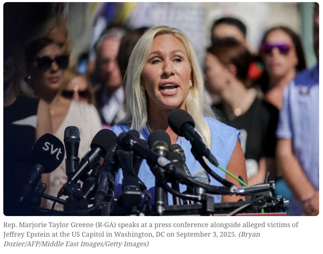 随后,泰勒·格林在社交媒体帖子中回应了特朗普,她写道:“他当然要狠狠地攻击我,以此杀鸡儆猴,吓唬其他共和党人。”据报道,格林是少数支持公开爱泼斯坦所涉案件档案的共和党议员之一。